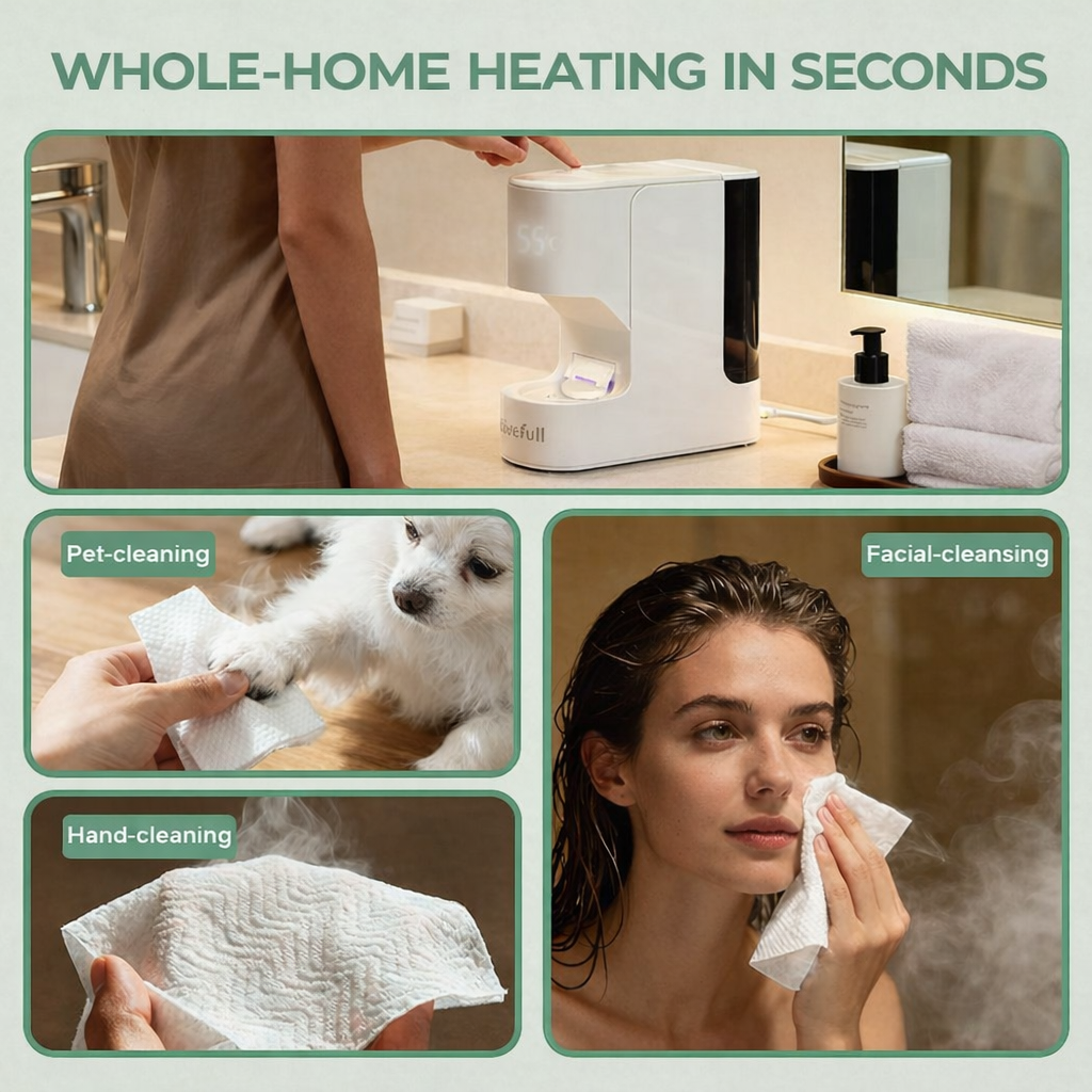 The PureSteamâ„¢ Towel Warmer heats towels in just 5 seconds, providing immediate warmth and comfort.